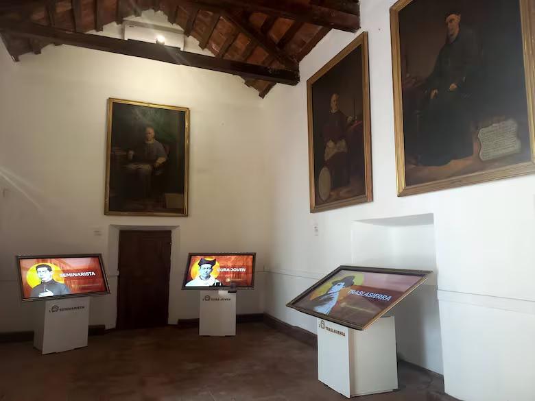 Sala de reuniones, que recorre su formación, su llegada a Traslasierra, su obra pastoral —como la Casa de Ejercicios y el Colegio de Niñas—, su regreso a Córdoba y sus gestiones sociales, a través de reconstrucciones digitales, imágenes 360° y material audiovisual.